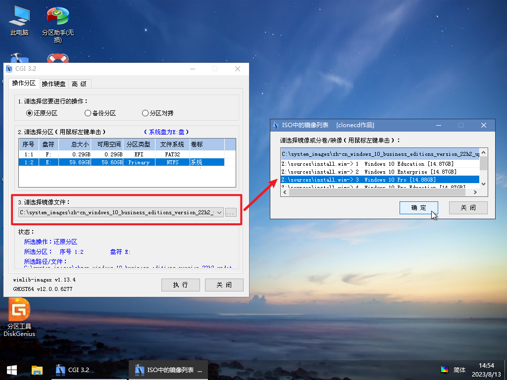 ISO文件或者WIM文件一般内部会有多个系统镜像,会自动弹出新的窗口再选择安装需要的系统版本: