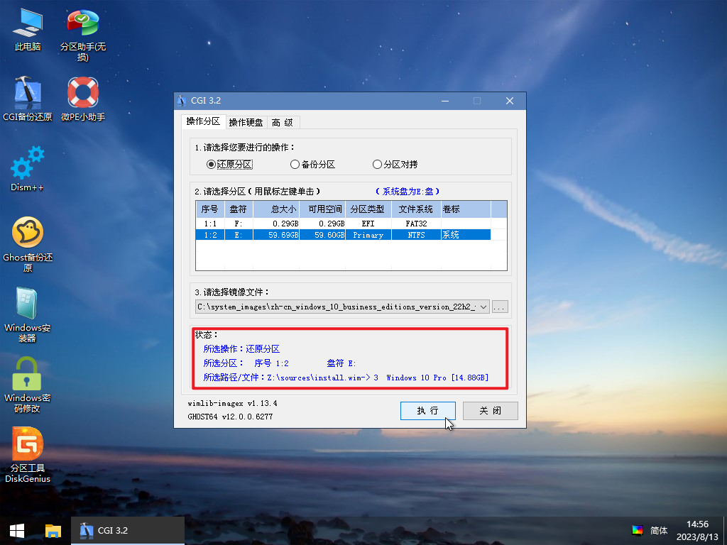 最后再下方确认安装分区以及系统版本无误点击执行: